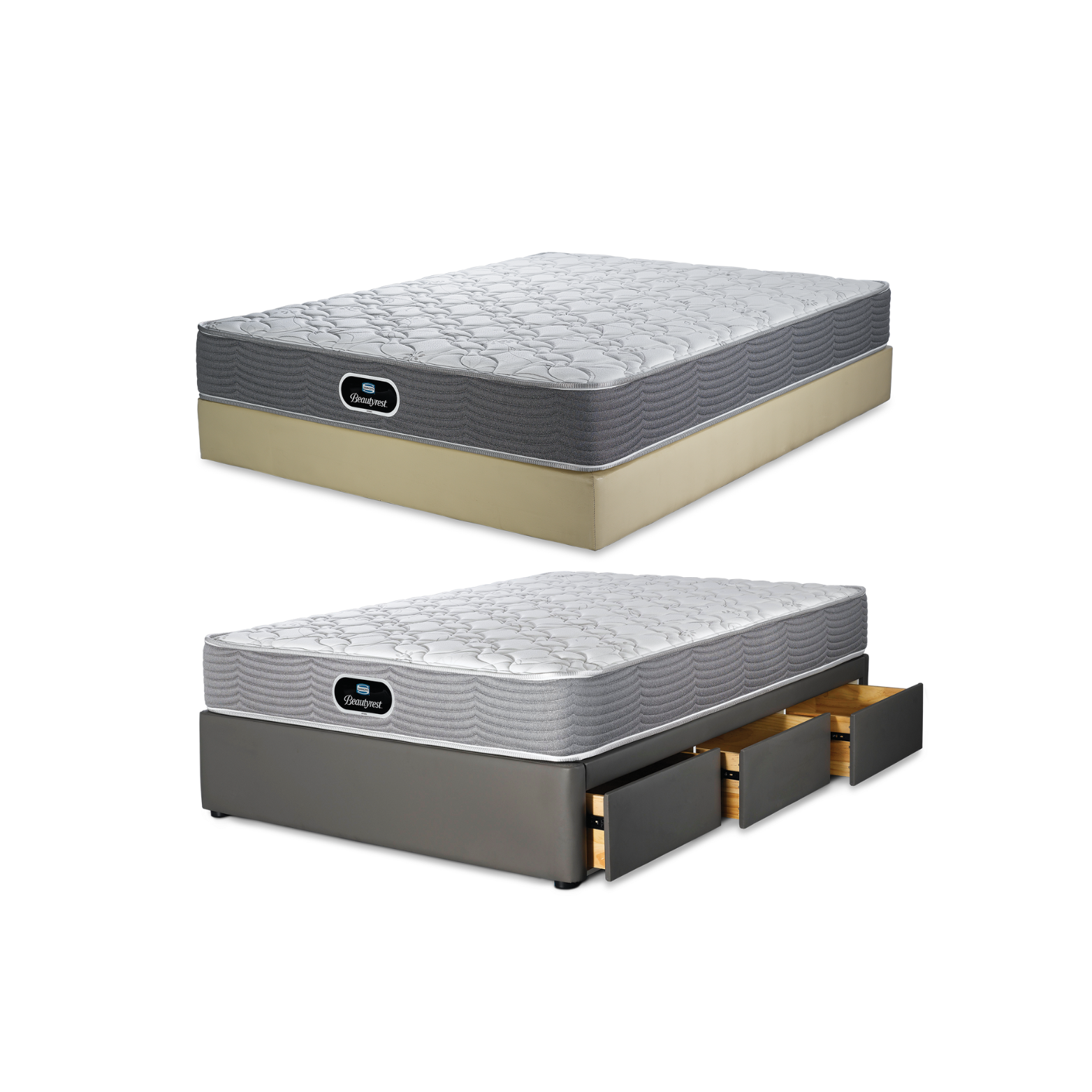 The pictures here show two options of Simmons® bed base, one with drawers, one without, please contact our sales consultants or or Customer Service department for further details .