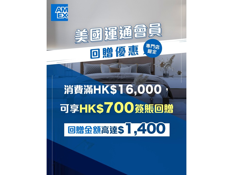Register an Eligible Card then spend a cumulative net amount of every HK$16,000, in-person at Simmons shops in Hong Kong by 2025/12/31, to receive HK$700 statement credit, up to 2 times per registered Card. Terms & Conditions apply.