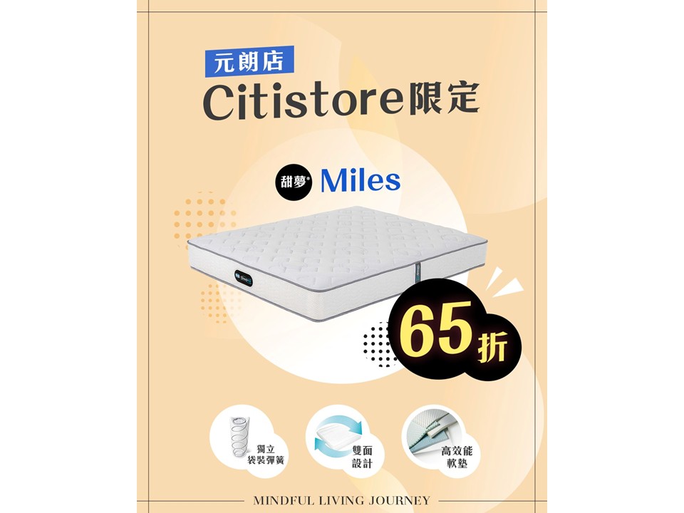 Good sleep begins with the right mattress. Simmons x Citistore Yuen Long brings you a limited-time offer: the popular Beautyrest® Miles is now available at 35% off, so you can enjoy world-class sleep at home.