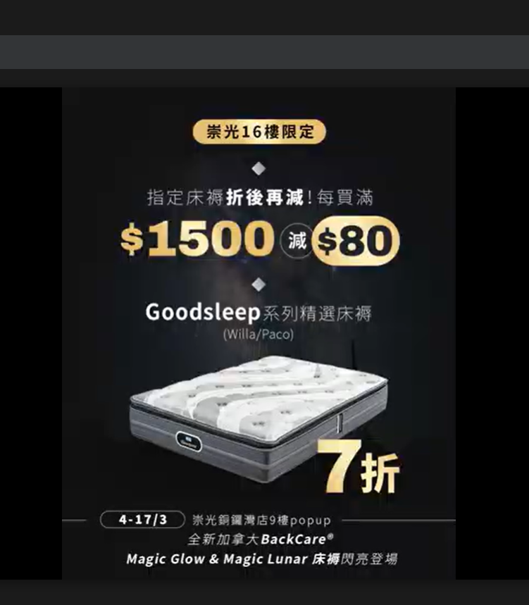 💵 Extra HK$80 off per HK$1,500 spent on designated mattresses