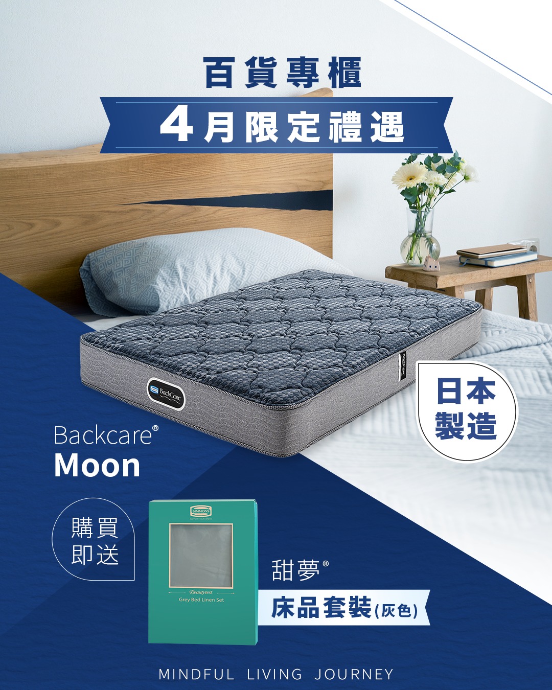 Purchase Backcare® Moon now and receive a complimentary Beautyrest® Bed Linen Set (Gray), including two pillowcases and one fitted sheet.