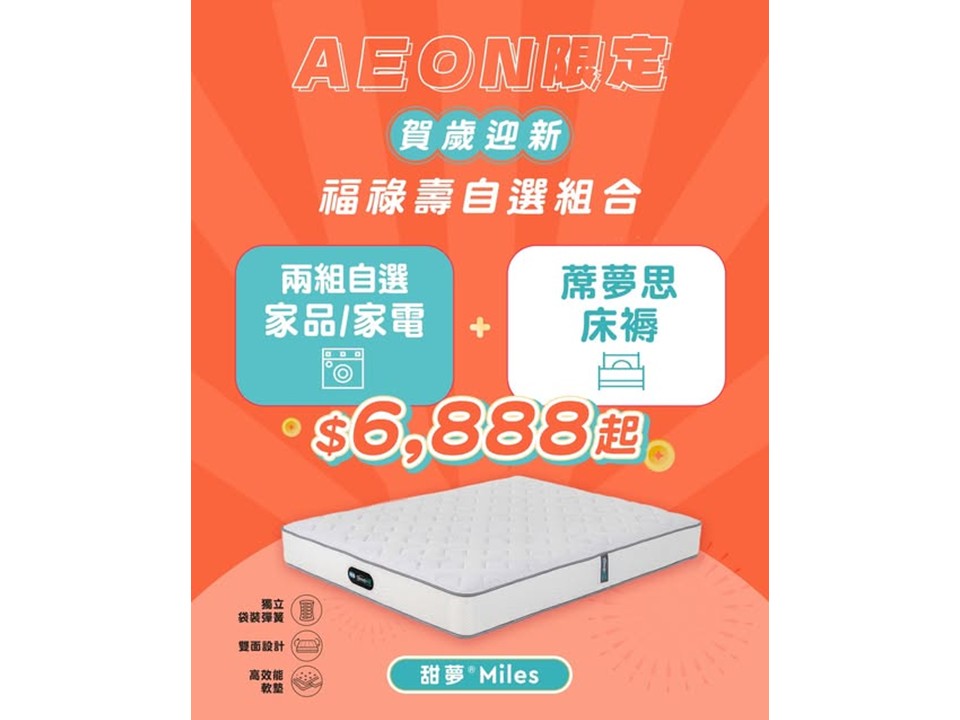 • Private Sale: All mattresses extra 12% off➕AEON members enjoy an additional 10% off