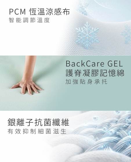 • BackCare GEL memory foam for enhanced spinal contour support